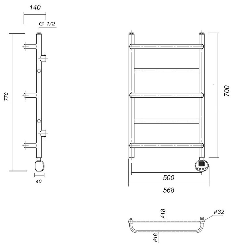 Полотенцесушители Полотенцесушитель электрический Domoterm Орфей П5 500х700 ER хром