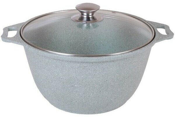 "Кастрюля с антипригарным покрытием со стеклянной крышкой Kukmara (Светлый мрамор) кмс82-1а, 8 л"