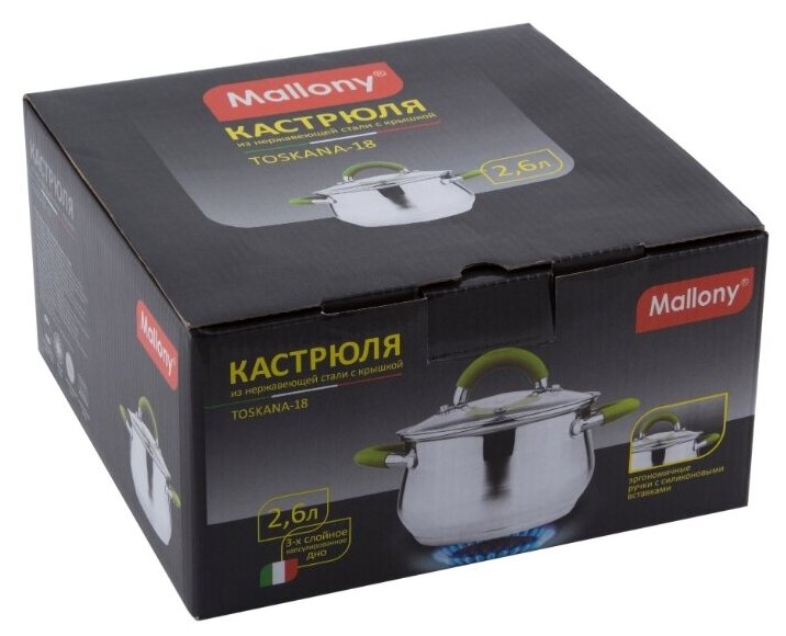 Кастрюли Кастрюля TOSKANA-18, объем 2,6 л, диаметр 18 см из нержавеющей стали с крышкой