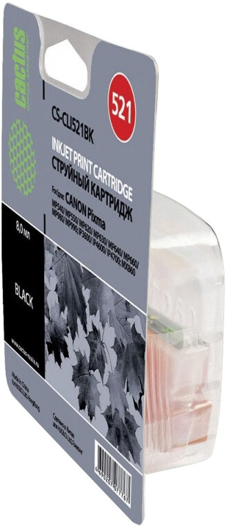 Картридж струйный Cactus CS-CLI521BK черный (8.4мл) для Canon Pixma MP540/MP550/MP620/MP630/MP640/MP