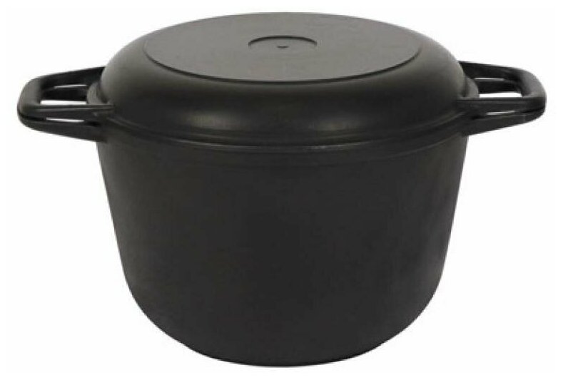 Лучшие цены. Чугунная кастрюля с чугунной крышкой-сковородой – дополнение к современной кухне! Для любителей тушеных блюд идеальный вариант — чугунная кастрюля, поскольку именно благодаря толстым стенкам при тушении сохраняется всё вкусовое богатство и пикантный аромат блюда. Чугунная кастрюля в комплекте с чугунной крышкой-сковородой 2 в 1. Магазины в вашем городе.
