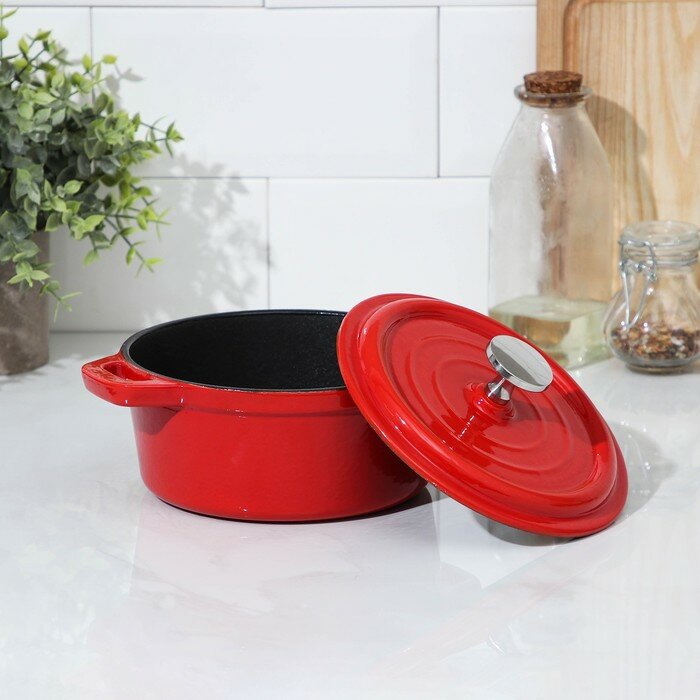 Лучшие цены. Кастрюля чугунная Volcano, 1 л, 21,5×17×11 см, для подачи, цвет красный Посуда из чугуна с эмалированным покрытием - это мечта каждой хозяйки! В пользу классического приспособления говорят его долговечность, универсальность применения и возможность использования металлических лопаток. Чем ещё хороша такая посуда? образует естественный антипригарный слой; быстро и равномерно распределяет тепло; подходит для всех типов плит; имеет гладкую поверхность и низкие стенки. Магазины в вашем городе.