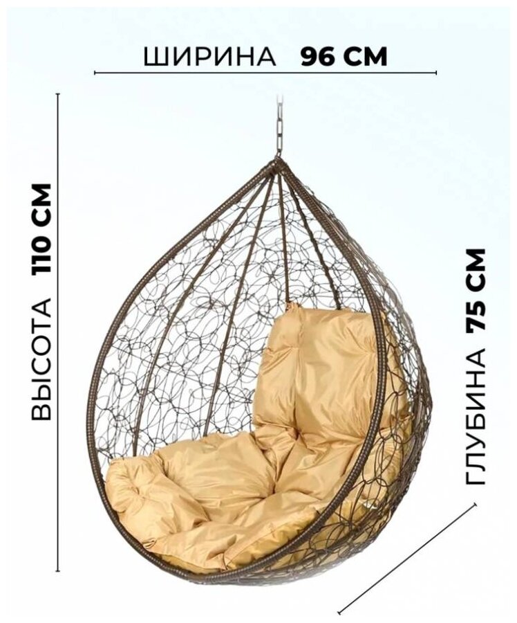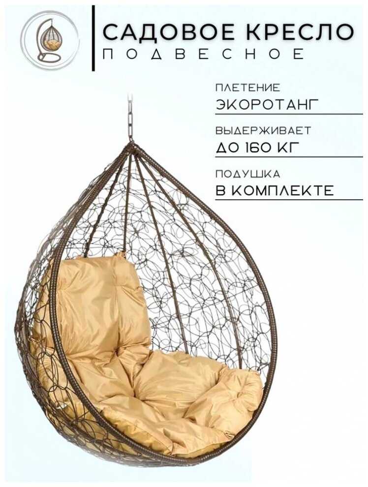 Кресло подвесное Bigarden "Tropica", коричневое, без стойки, коричневая подушка