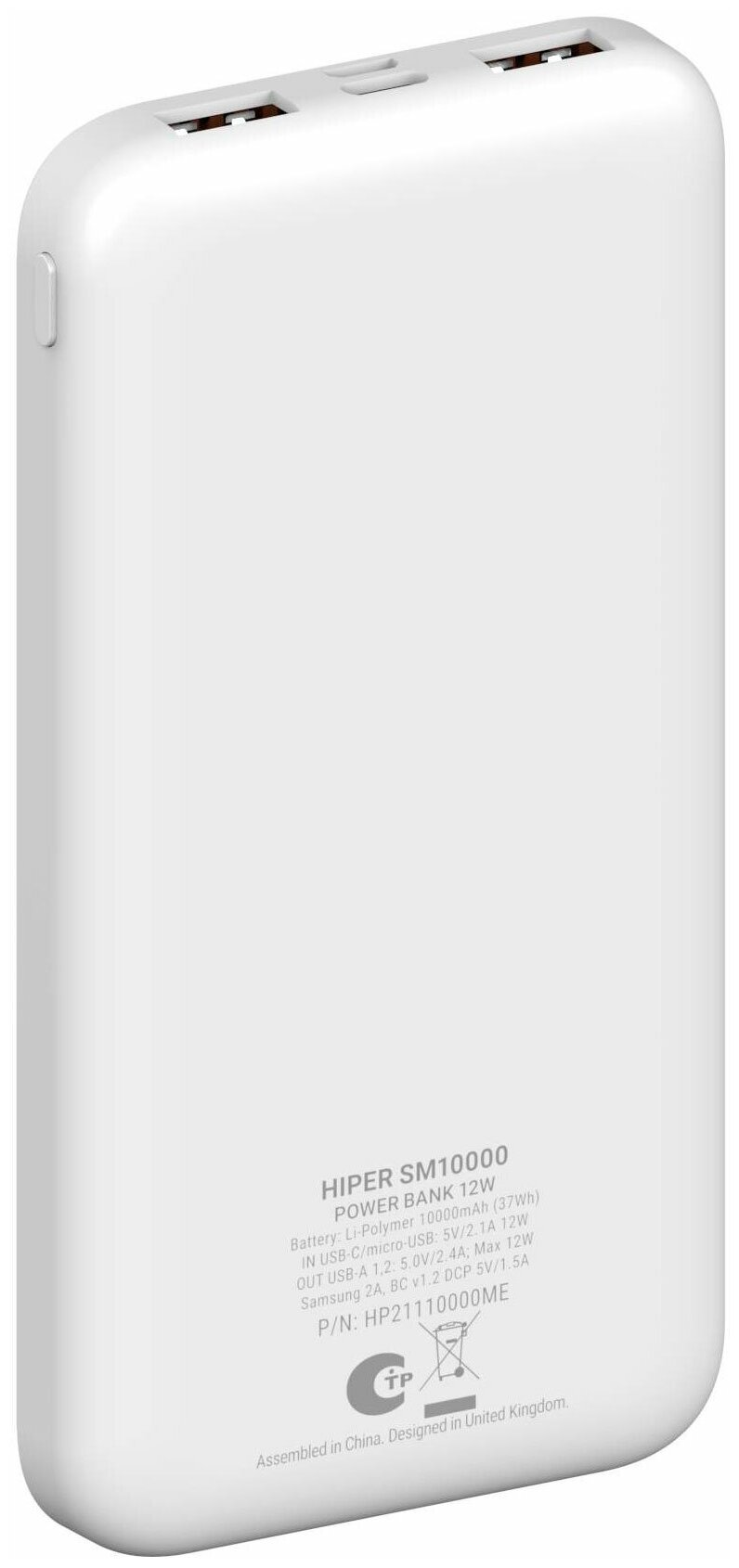 Внешний аккумулятор (Power Bank) HIPER SM10000, 10000мAч, белый [sm10000 white]