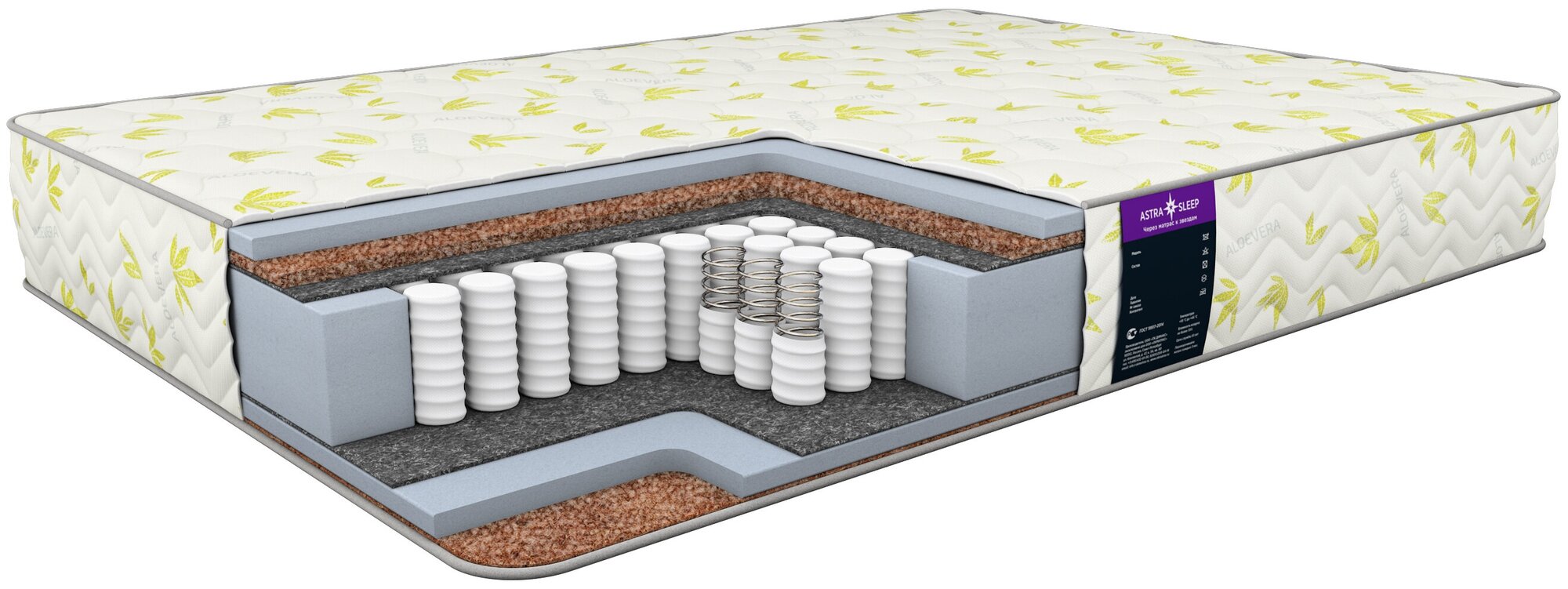 Лучшие цены. Пружинный независимый матрас Astra Sleep Ortho Standart 21 S500 для кровати размером 120х185 см или 1200х1850 мм. Блок из 512 независимых пружин на спальное место обеспечивает правильное распределение нагрузки и естественное положение тела во время сна. Чехол приятный на ощупь и плотный, гарантирует нужный уровень вентиляции для наполнителей матраса и имеет долгий срок службы. Состав матраса: Чехол: трикотаж Aloe Vera – OrtoFoam: 2 см. – Бикокос: 1 см. Магазины в вашем городе.