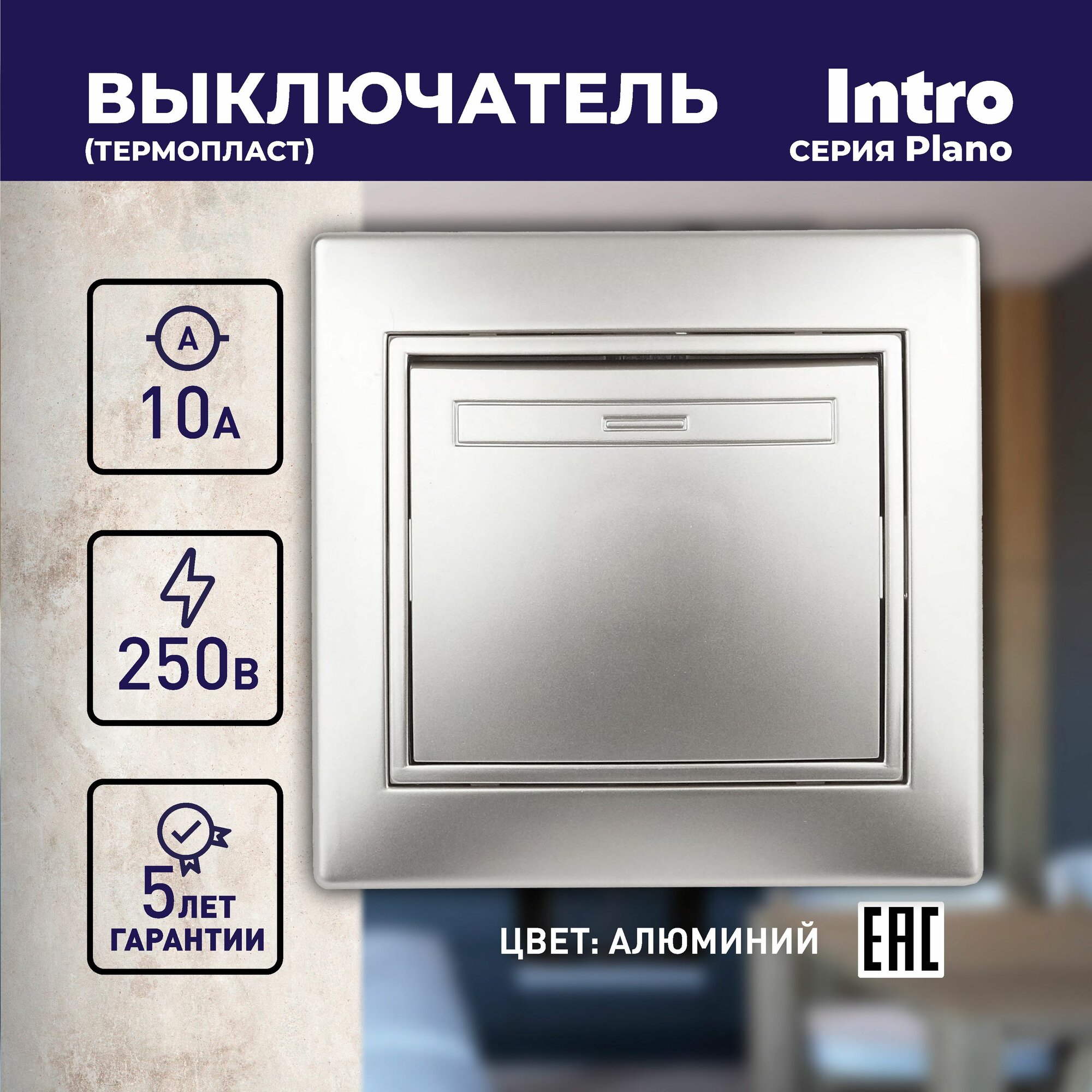 Выключатель Intro Plano выкл. СУ 1 кл. 10А, 250В, алюминий 1-101-03 6587 (арт. 833076)