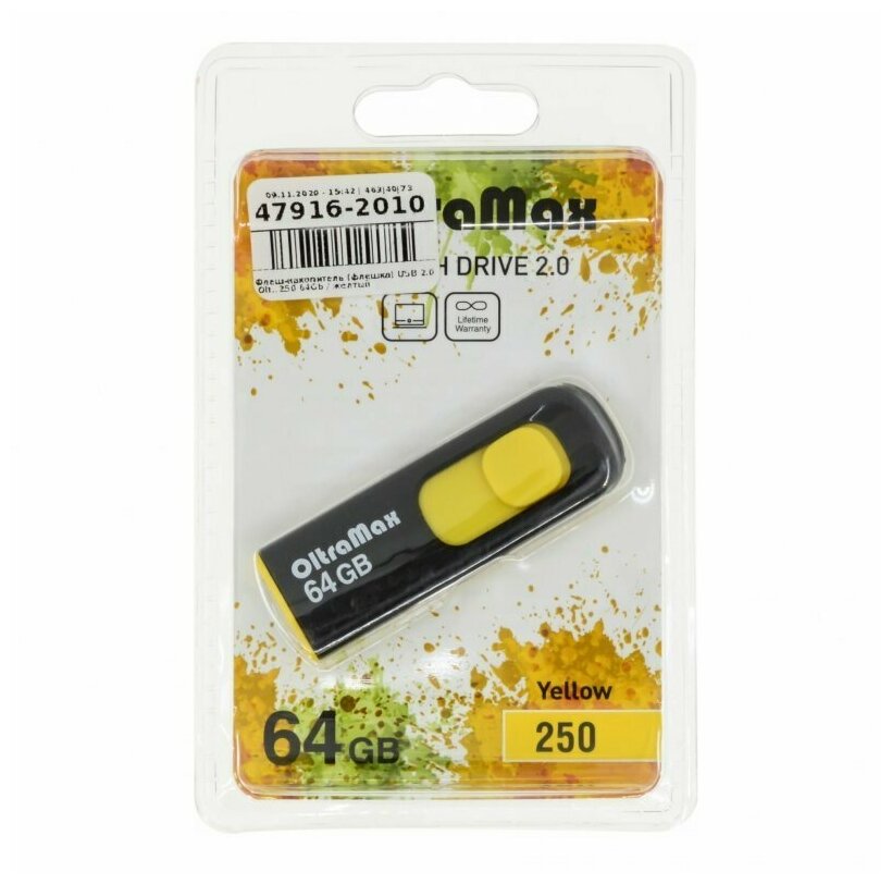 USB-флешки Флеш-накопитель 64Gb OltraMax 250, USB 2.0, пластик, жёлтый
