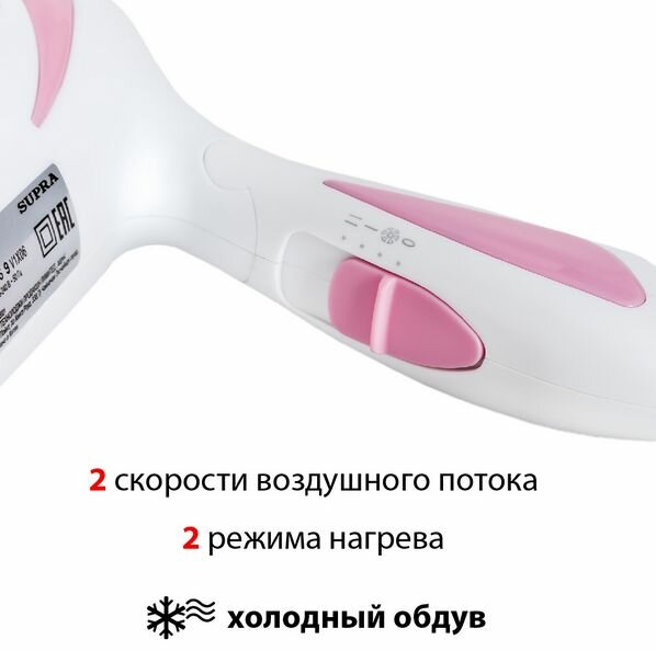 Лучшие цены. Фен Supra PHS-1406S — компактное устройство для укладки, сушки и придания волосам объема дома или во время путешествий. Идеальный вариант для ежедневного применения Мощность 1400 Вт. 2 скорости воздушного потока. 2 температурных режима. Подача холодного воздуха. Насадка-концентратор. Складная ручка для удобной транспортировки и хранения. Петелька для подвешивания. Уход за волосами Для удаления излишней влаги или быстрого высушивания волос необходимо установить нужный режим подачи воздуха из двух возможных. Магазины в вашем городе.