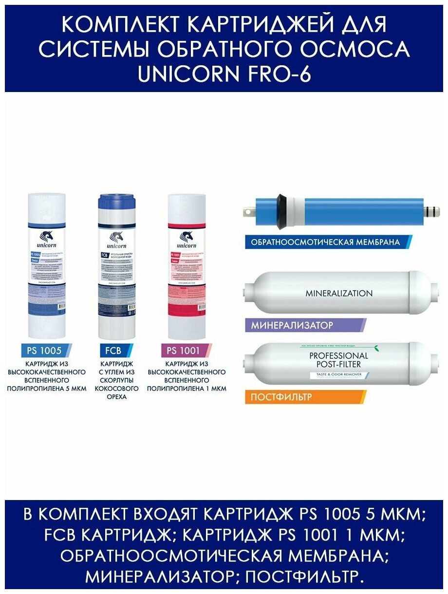 Фильтры для воды Система обратного осмоса Unicorn FRO-6 (6 ступеней очистки)