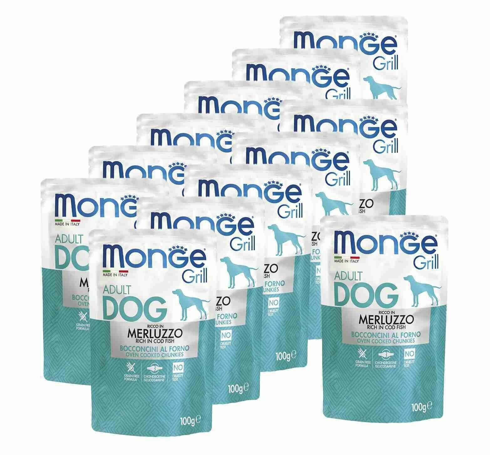 Корм для собак Влажный корм для собак Monge Dog Grill Merluzzo, беззерновой, с треской, 12 шт. х 100 г