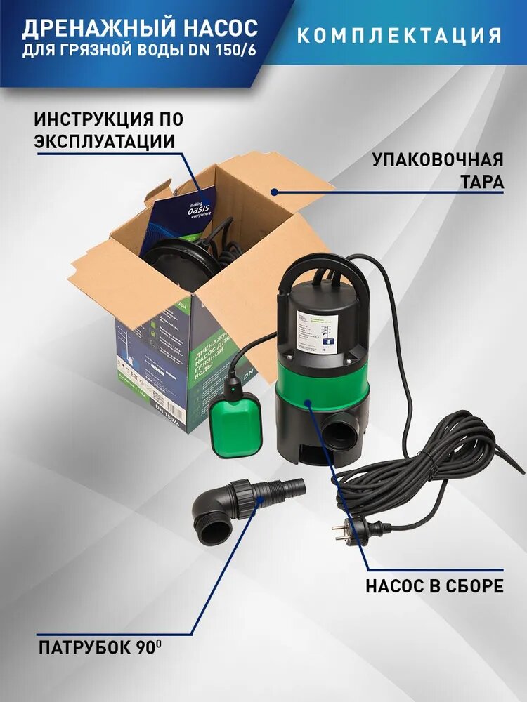 Погружные (дренажные) насосы Насос дренажный Oasis DN 150/6, 400 Вт, напор 6 м, 150 л/мин