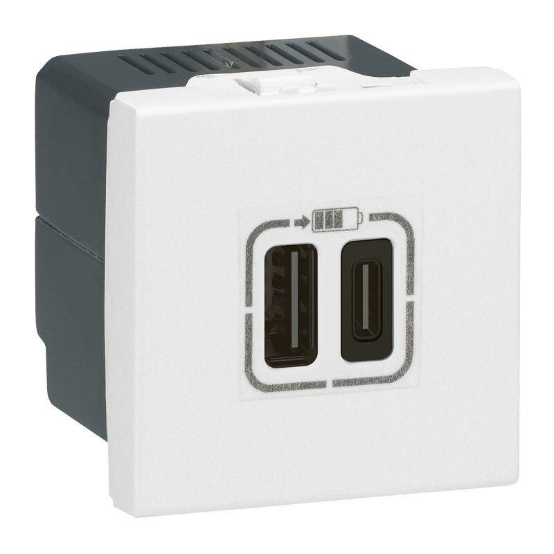 Розетки Розетка USB для зарядки двойная тип C+C - Legrand Mosaic - 2 модуля - белая