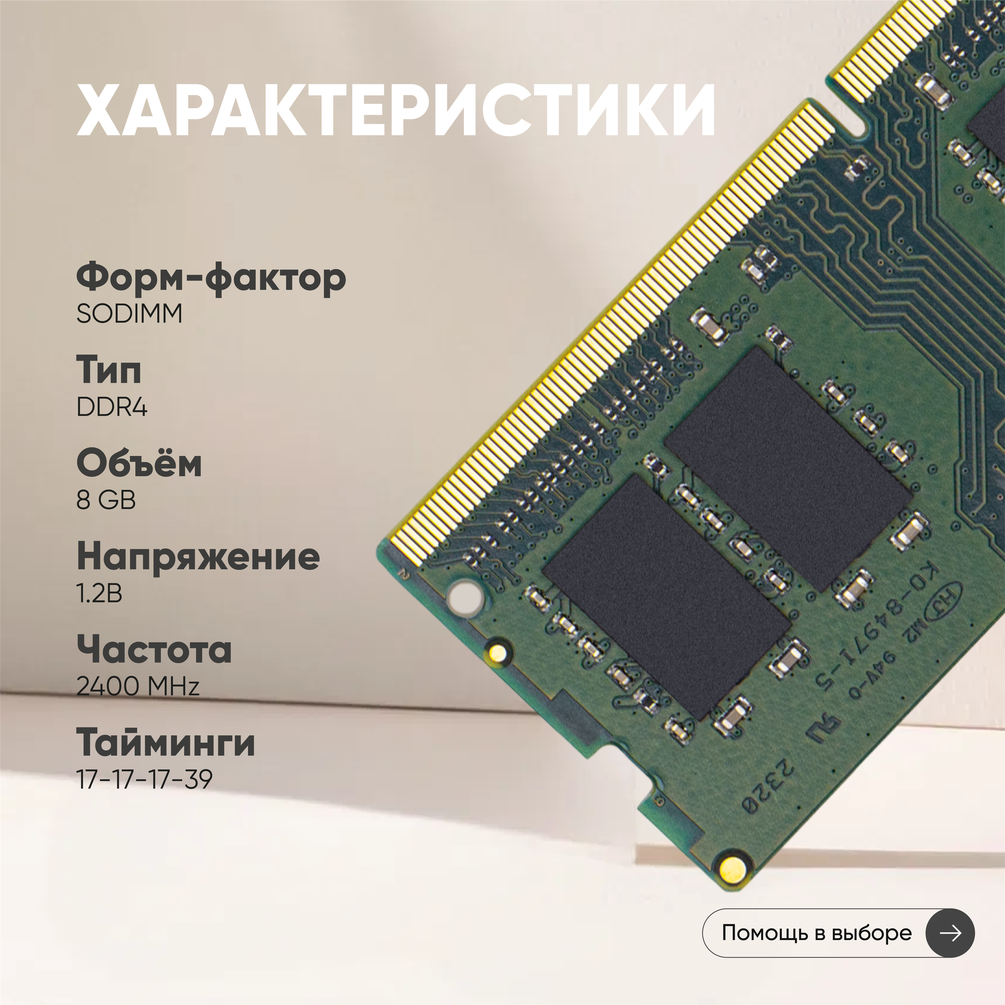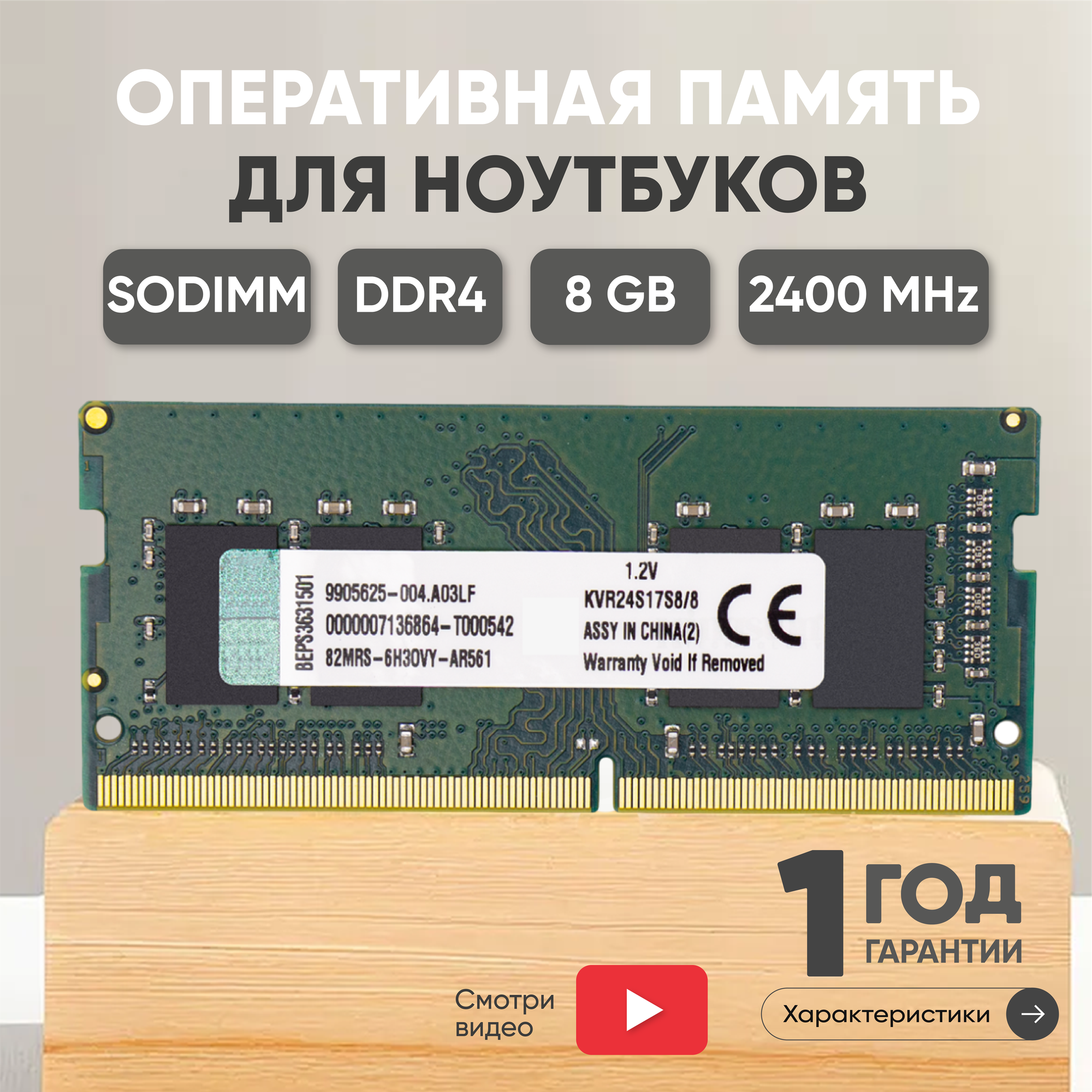 Оперативная память Модуль памяти Kingston SODIMM DDR4, 8ГБ, 2400МГц, 1.2В, PC4-19200