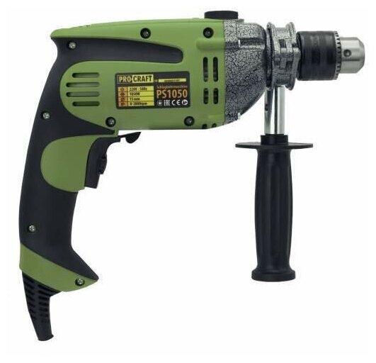 Лучшие цены. Ударная дрель промышленно-производственной марки PROCRAFT PS1050 предназначена для сверления отверстий в деревянных и металлических изделиях. Эксплуатационные характеристики Питание инструмента осуществляется от бытовой электрической сети с номинальным напряжением 220-230 В. Мощности дрели в 1050 Вт вполне достаточно для выполнения ремонтных и строительных работ как в домашних условиях, так и на небольшом производстве. Магазины в вашем городе.
