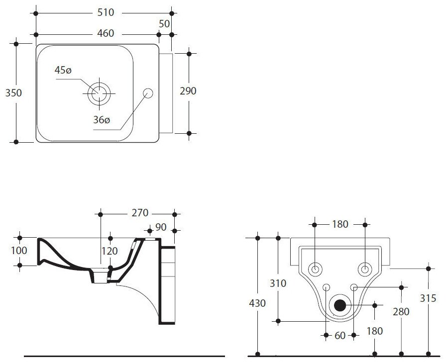 | Отверстие для смесителя | 1 |