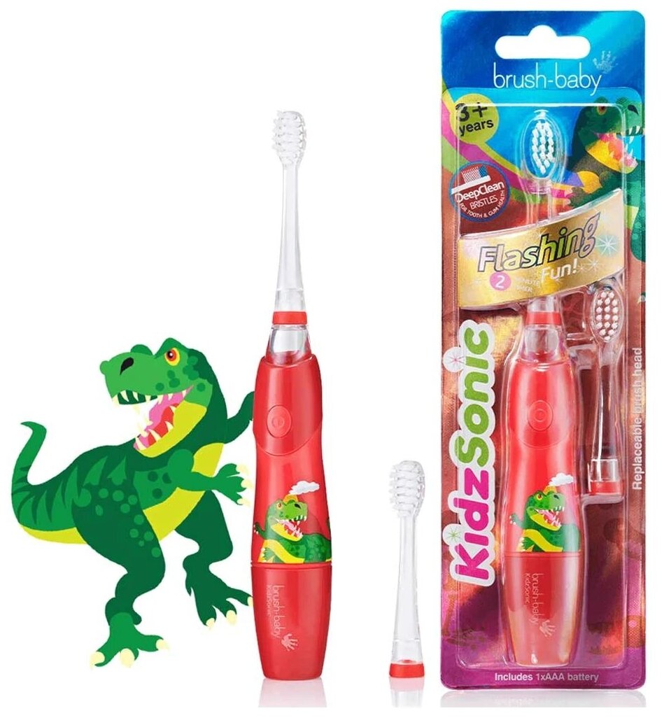 Лучшие цены. Детская электрическая звуковая зубная щётка Brush-Baby KidzSonic для тщательного ухода за молочными зубами детей в возрасте от 3 лет. Чистящая головка обладает двухуровневой щетиной, которая одинаково эффективна как для обработки поверхности зубов, так и межзубных промежутков. Изделие имеет подсветку, мигающую разными цветами, а также двухминутный таймер, напоминающий ребёнку о необходимости продолжать сеанс. Каждые 30 секунд прибор сигнализирует вибрацией, когда пора сменить зону чистки. Магазины в вашем городе.