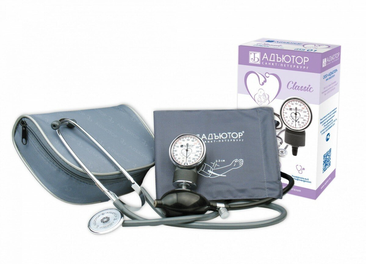 Лучшие цены. Тонометр механический ИАД-01-1 (комплект 3) - с манжетой 36-54 см и фонендоскопом в комплекте Адъютор. Тонометр предназначен для измерения систолического (верхнего) и диастолического (нижнего) артериального давления косвенным методом Короткова в медицинских учреждениях и в домашних условиях. В состав тонометра ИАД-01-1 входит: - Металлический манометр 50 мм - диапазон измерений от 20 до 300 мм рт. Магазины в вашем городе.
