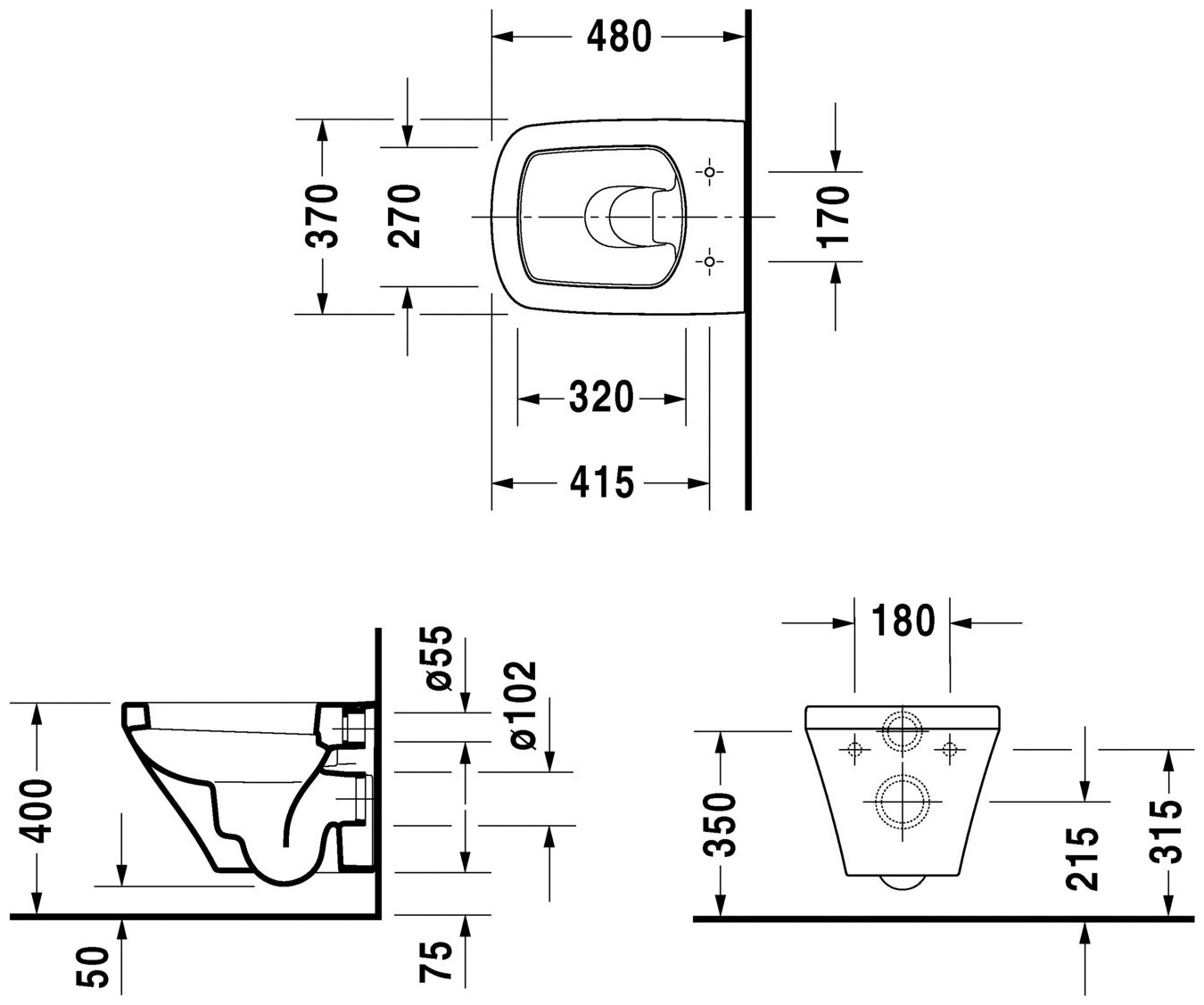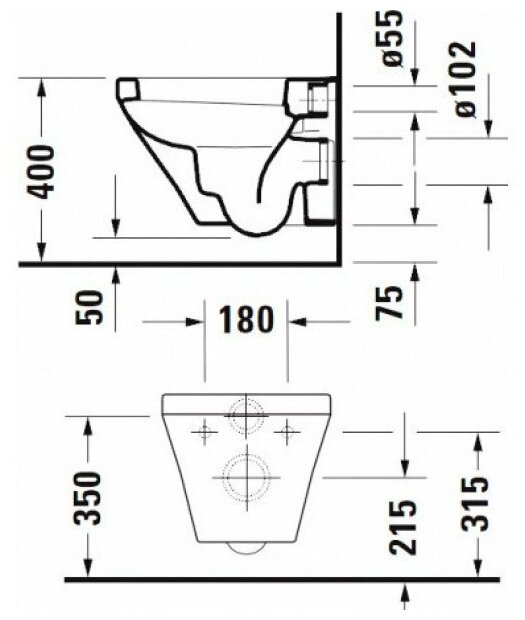 Унитазы Унитаз Duravit DURASTYLE подвесной 370х480мм с верт. смывом, без крепления 2539090000