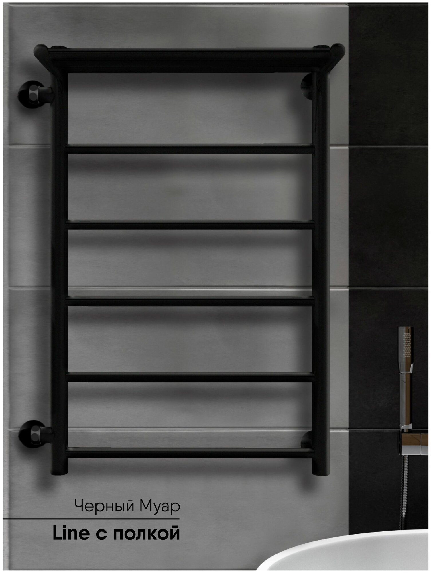 Полотенцесушители Полотенцесушитель водяной Line с полкой 70/40 межосевое расстояние 60 боковое подключениеслева , Черный муар INDIGO