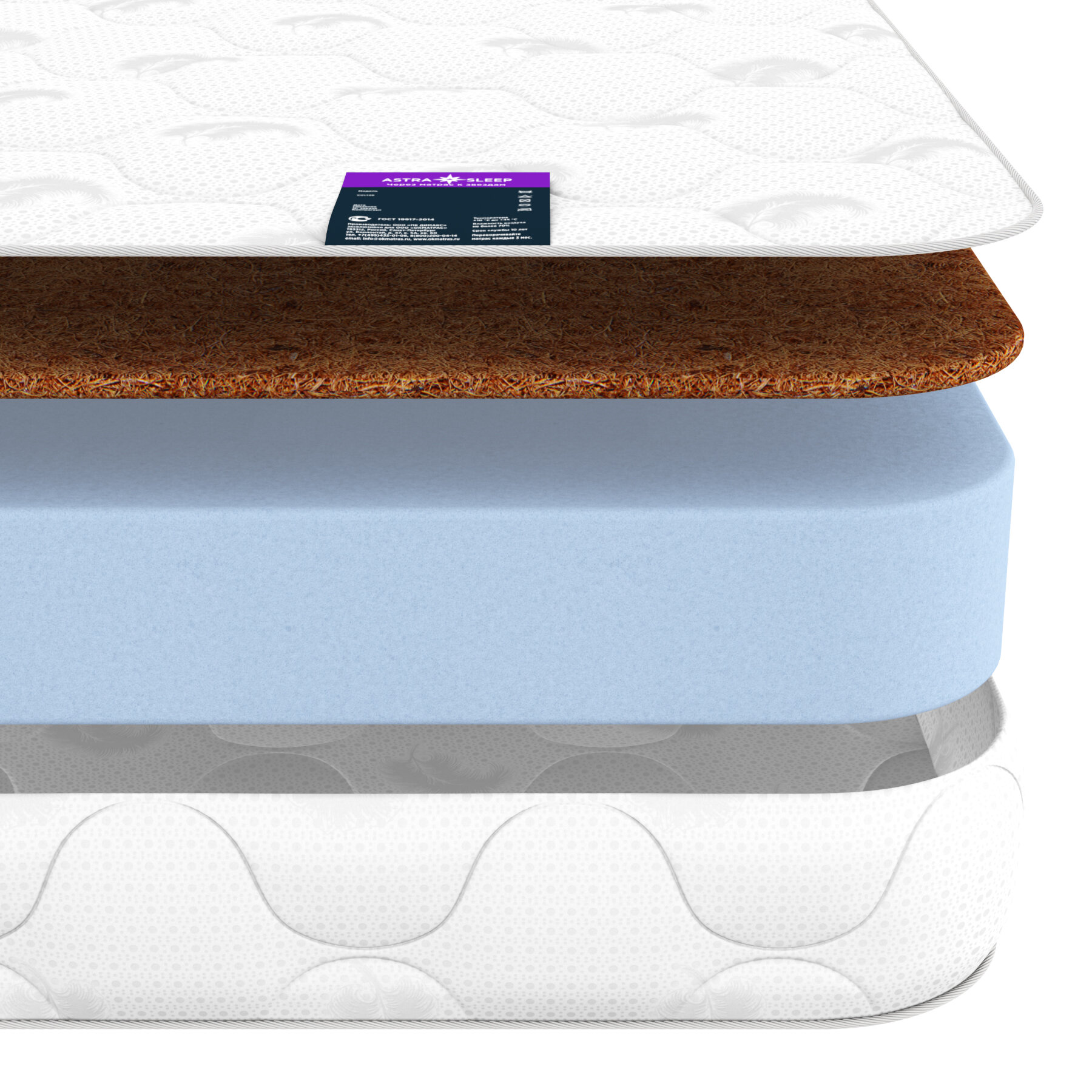 Матрас беспружинный с кокосом Astra Sleep Everynight Ultra 160х200 см. 17 434 ₽ Подробнее
