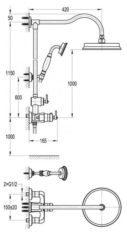 | Комплектация | ручной душ / верхний душ / смеситель / стойка / штанга / душевой шланг / крепление ручного душа |