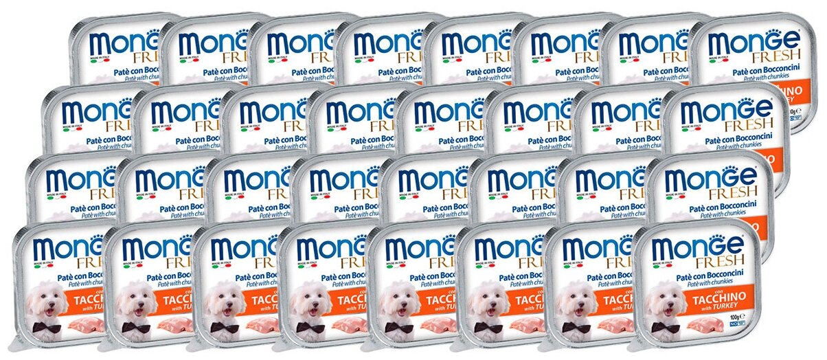 Корм для собак MONGE FRESH DOG для взрослых собак паштет с индейкой (100 гр х 32 шт)