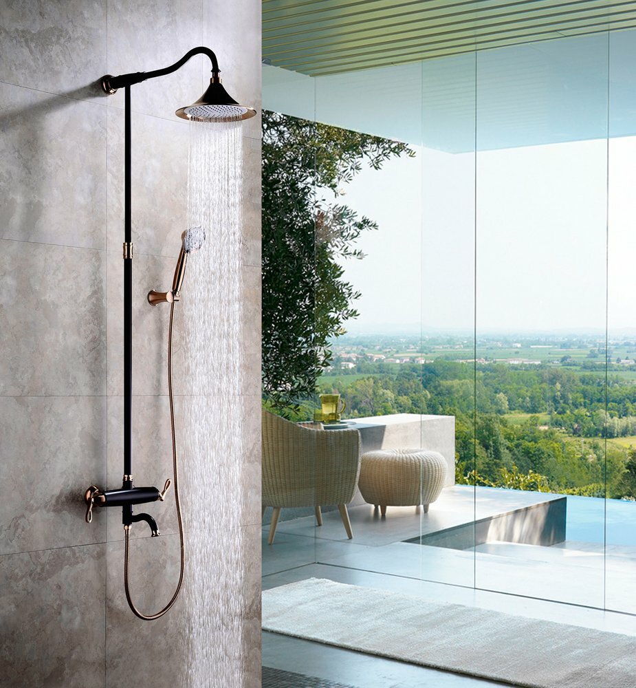 Душевая система Lemark Prime со смесителем, черный/розовое золото (LM6162BRG)
