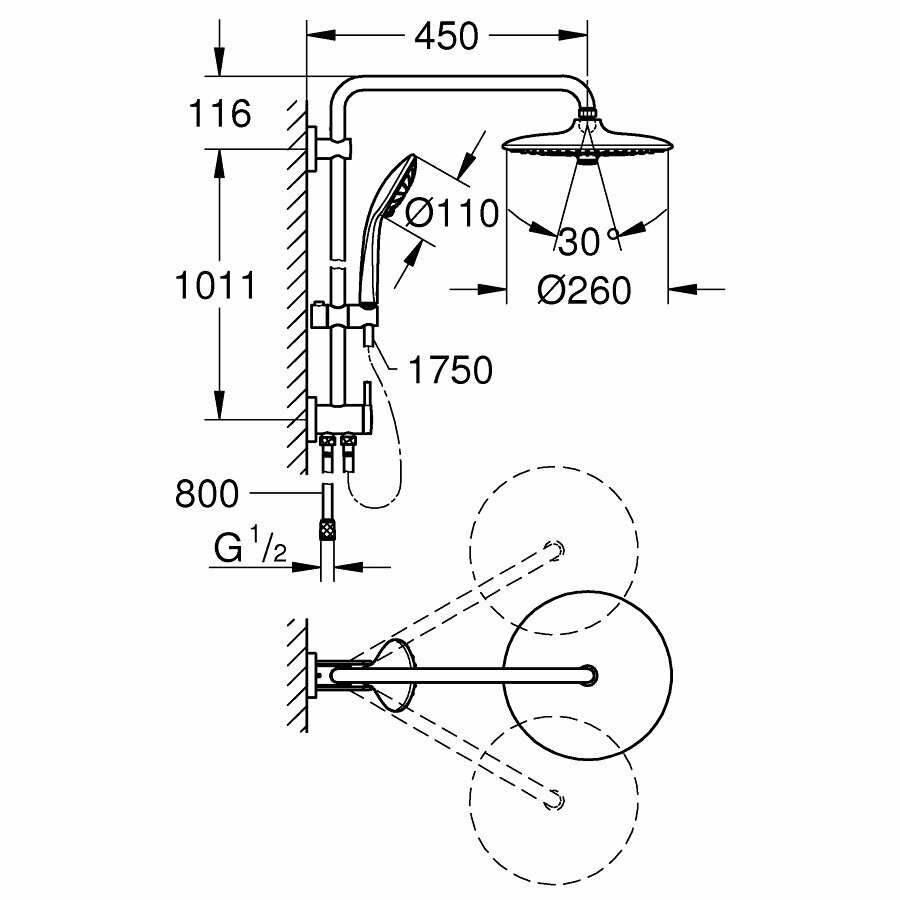 Душевой гарнитур Grohe Euphoria с верхним душем, хром (27421002)