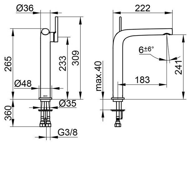 Лучшие цены. Смеситель для раковины, Keuco, Edition 400, тип открывания воды-однорычажный, тип регулирования воды-керамический картридж, отверстия для монтажа-1, высота, мм-265, вынос излива, мм-222, тип подводки-гибкая, стандарт подвода воды-3/8", цвет-хром. Магазины в вашем городе.