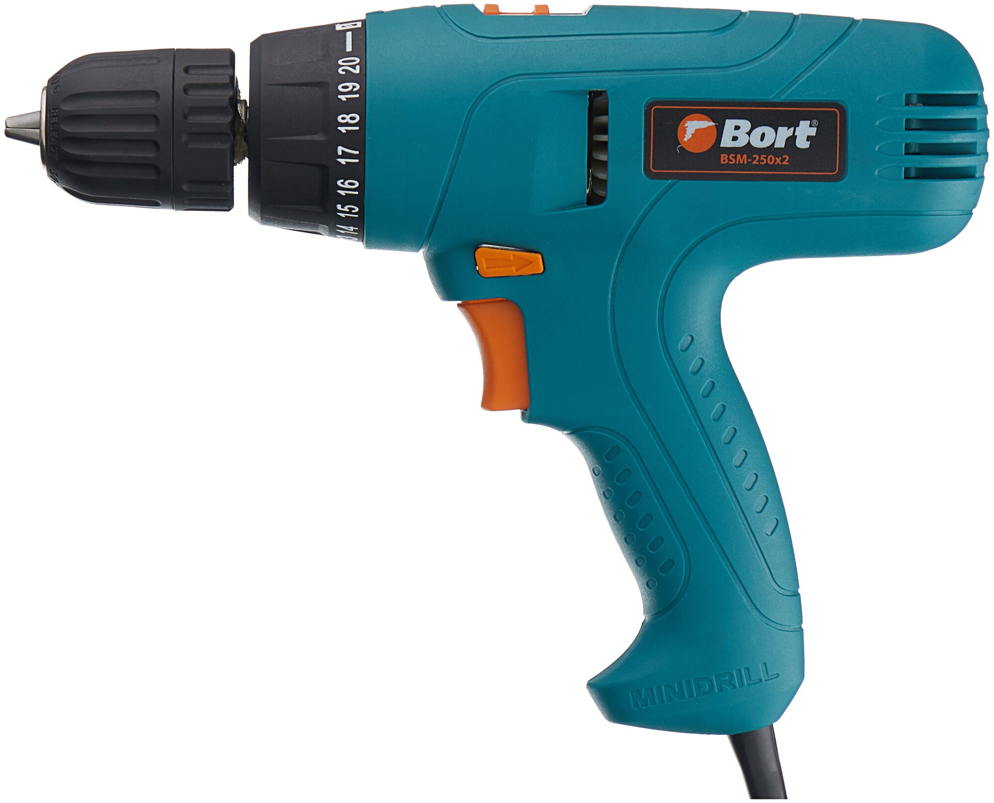 Лучшие цены. Дрель-шуруповерт электрический Bort BSM-250x2 Дрель-шуруповерт Bort BSM-250x2 - компактный инструмент с одной из лучших в своём классе эргономик. Малый вес, очень удобная ручка, специально разработанная конструкция с отличным балансом. Благодаря всем этим параметрам все работы выполняются не просто легко, но и с удовольствием: никакой утомляемости, удовольствие от полного контроля за дрелью. Магазины в вашем городе.