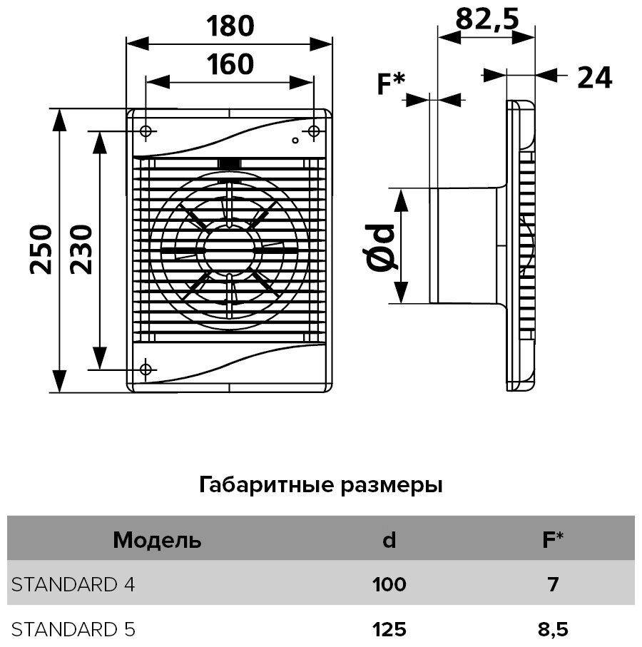 STANDARD 4, Вентилятор осевой вытяжной с индикацией работы D 100