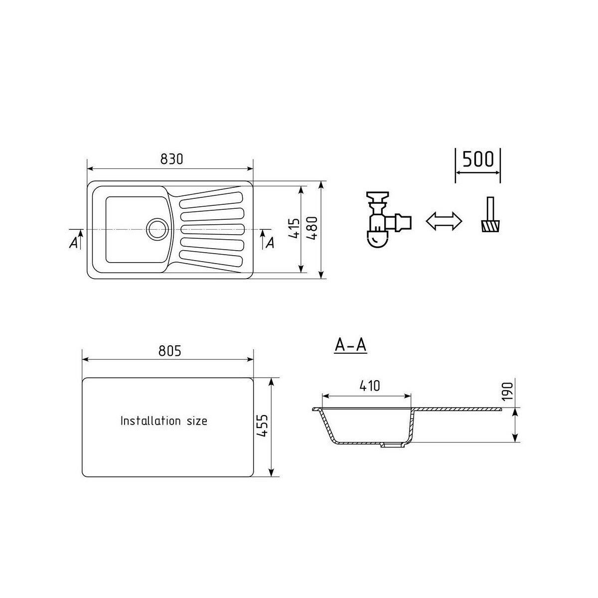 Кухонная мойка U-203 830*480мм прямоугольная (342) графит 7 988 ₽ Подробнее