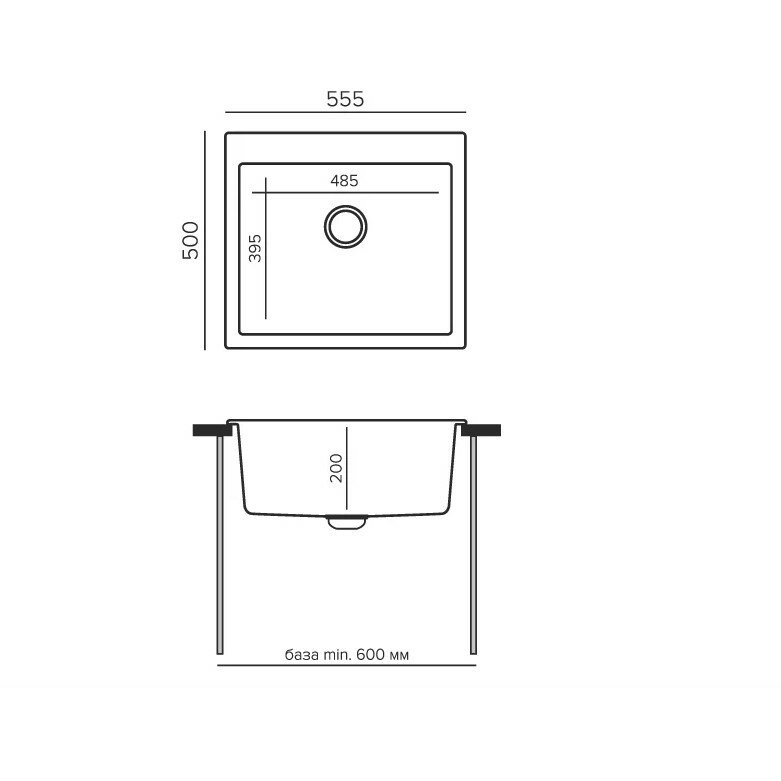 Мойка для кухни врезная Tolero / Толеро Classic R-111-911 гранит цвет черный размер 555×500мм глубина 200мм / раковина для кухни гранитная