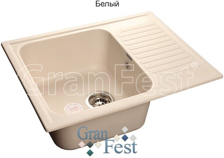 Кухонные мойки Врезная кухонная мойка 64.5 см, GranFest Standart GF-S645L, белый