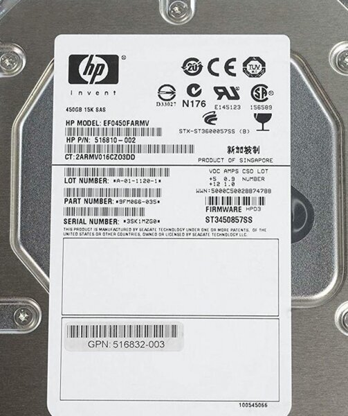 Жесткий диск Жесткие диски HP Жесткий диск HP 450GB, 3G, SAS, 15K, LFFDP, 454232-B21