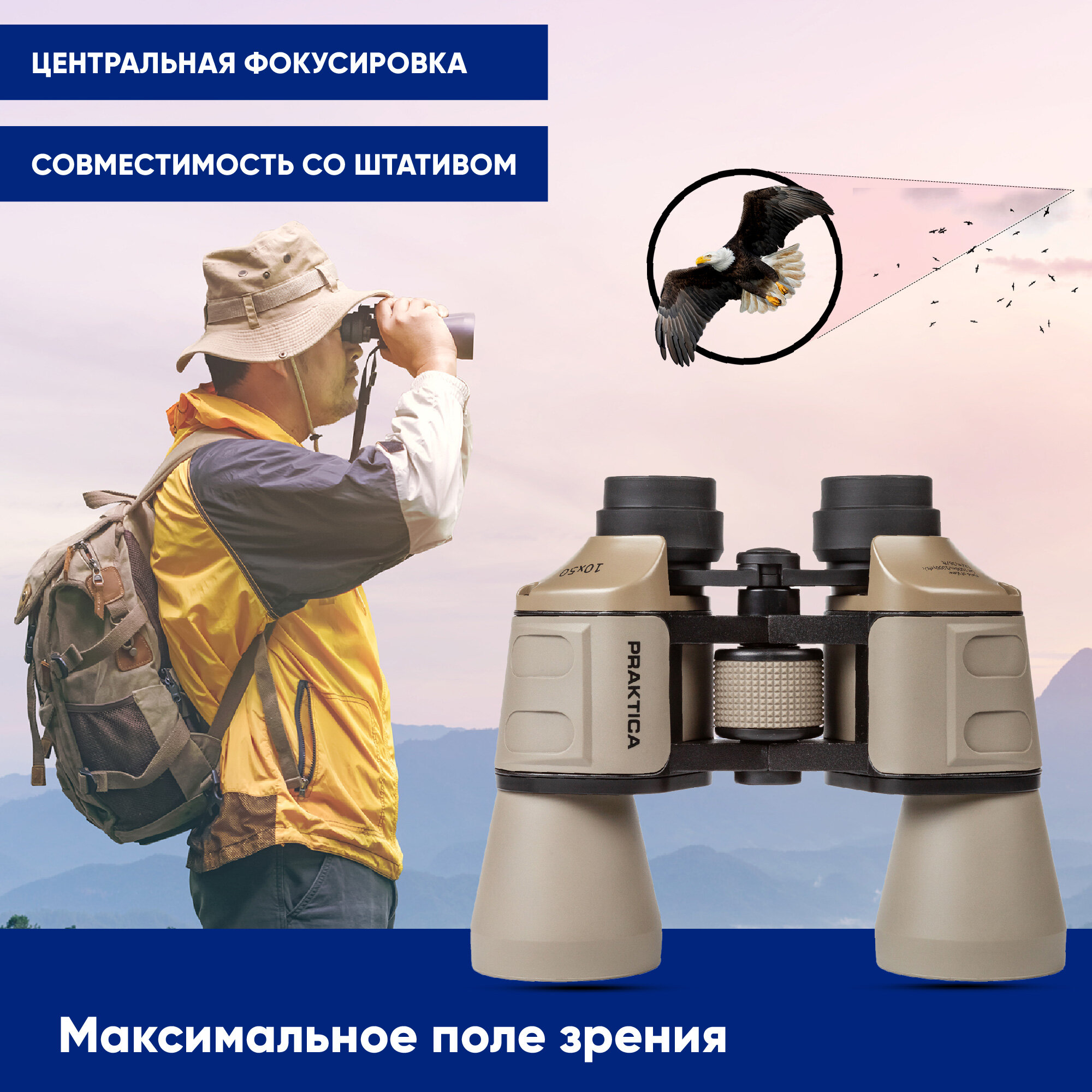 Бинокль / монокуляр Бинокль Praktica Falcon 10x50,туристический для охоты рыбалки, песочный