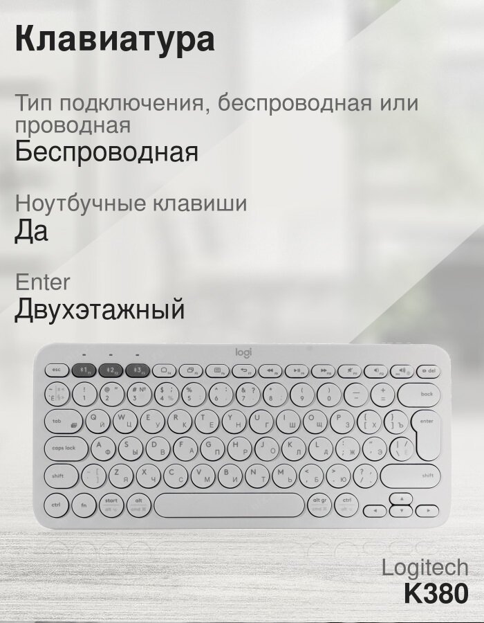 Беспроводная клавиатура Logitech K380 Multi-Device английская-русская 3 190 ₽ Подробнее