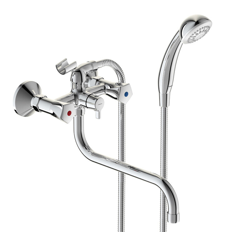 Лучшие цены. Life, настенный смеситель с длинным изливом (гусаком), 25 см, лейка в комплекте, арт. BA362AA, Vidima Смеситель двухрычажный Для ванны/душа Установка на стену Система облегченного монтажа SmartFix Монтаж на стандартных эксцентриках (в комплекте: эксцентрики, металлические отражатели, уплотнительные прокладки) Материал корпуса и излива: 100% латунь Материал рукоятки: высокопрочный пластик Трубчатый поворотный излив Угол поворота излива 360° Длина излива, мм: 250 Расстояние от стены до аэратора, мм: 309-314. Магазины в вашем городе.
