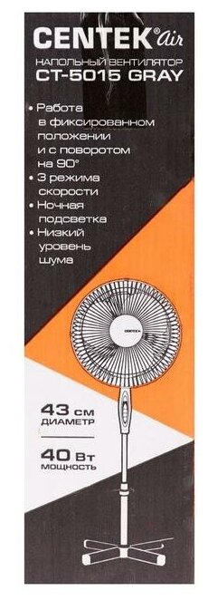 Вентилятор напольный Centek CT-5015 40 Вт D43 см цвет серый