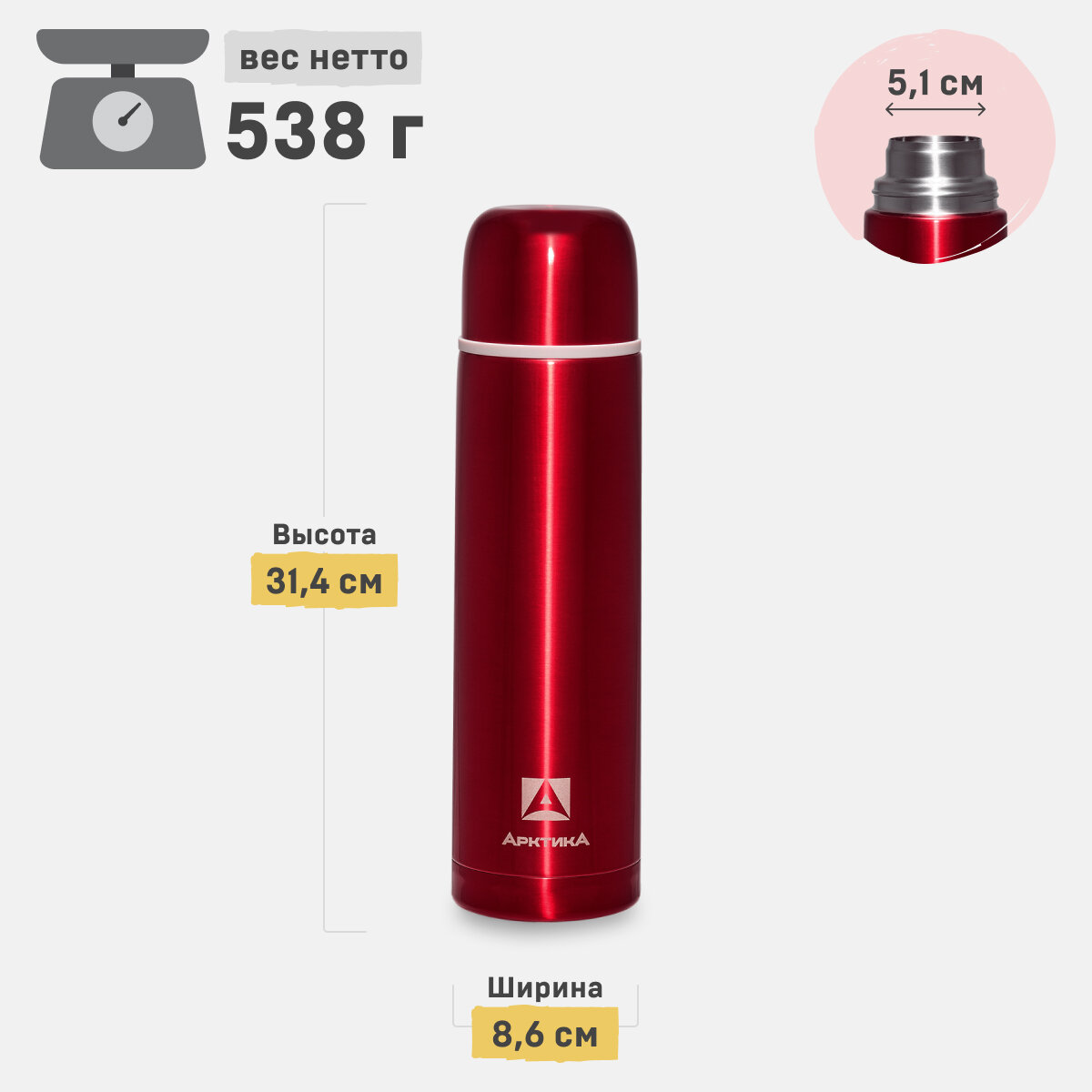 Термос бытовой вакуумный для напитков Арктика 1000 мл, 102-1000 - Красный