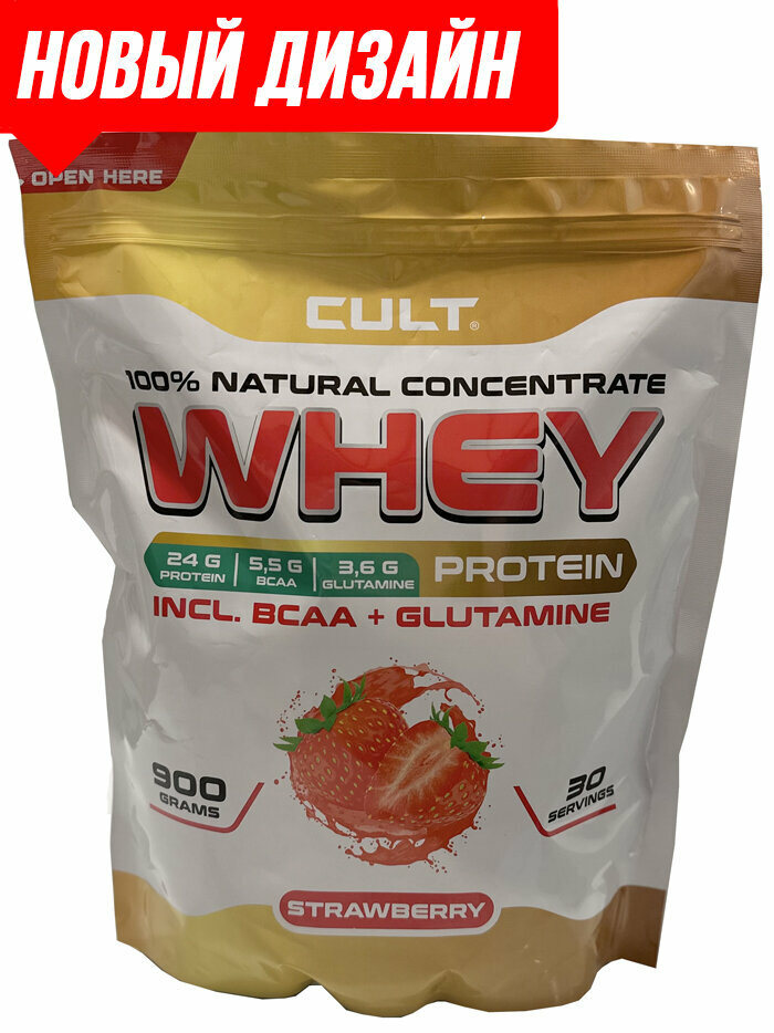 Сывороточный протеин Cult Whey Protein 80 - 900 грамм, клубника (новый дизайн!)