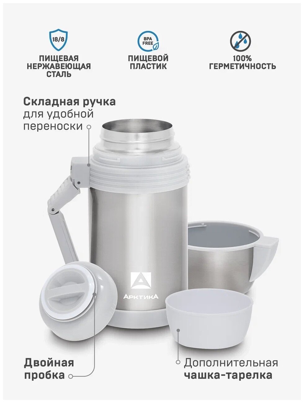 Термос 1 литр для еды и напитков Арктика универсальный с ручкой 205-1000 с широким горлом