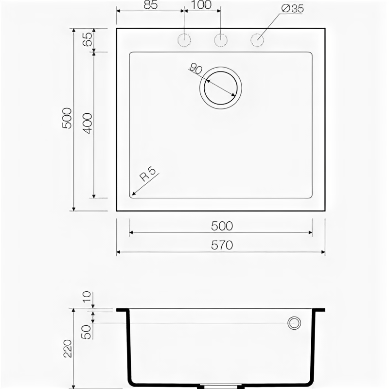 Размеры основной чаши (ДхШхГ) | 500x400х220 мм |