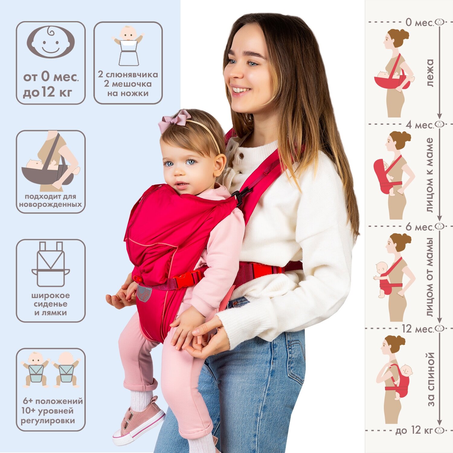 Слинг / рюкзак-кенгуру Рюкзак-кенгуру Чудо-чадо Baby Active Lux вишнёво-коралловый .