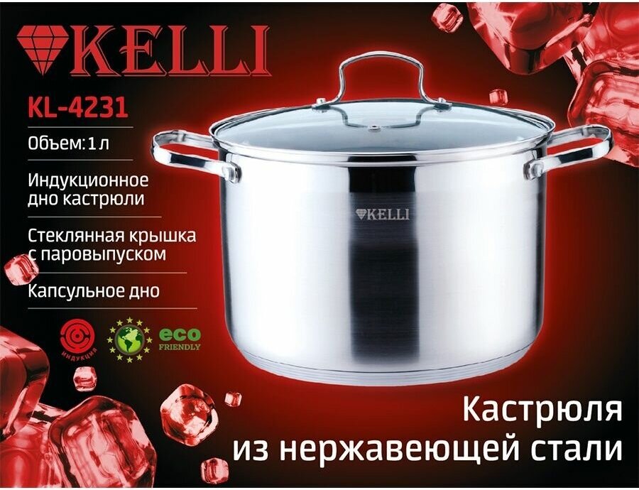 Кастрюля нержавейка индукционная с крышкой Kelli 4231 1 л