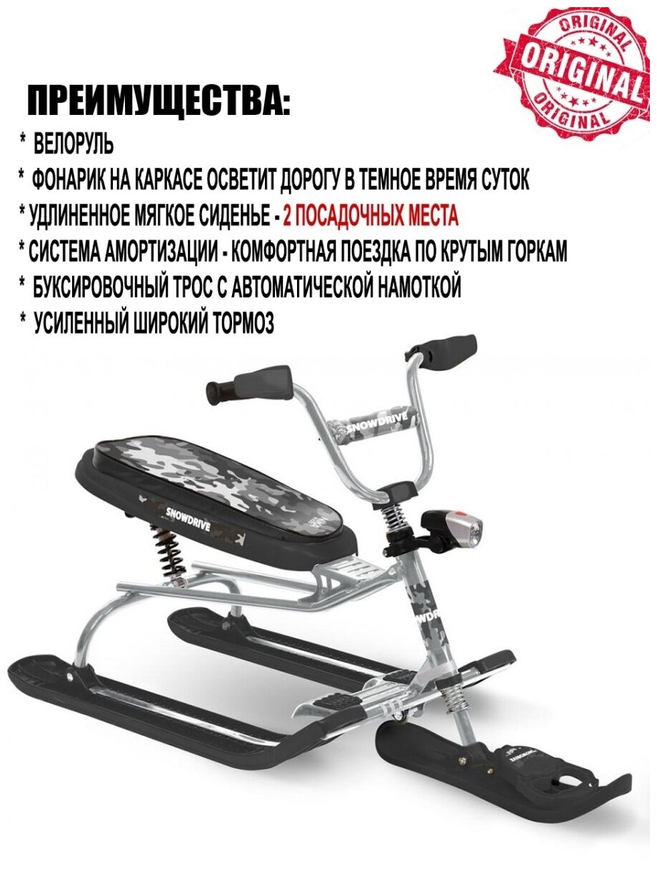 Снегокат СНД3 для детей и взрослых Nika nika kids snowdrive5. Грузоподъемность до 100кг. Велоруль, фонарь, тормоз, трос с авто намоткой черный каркас 7 980 ₽ Подробнее