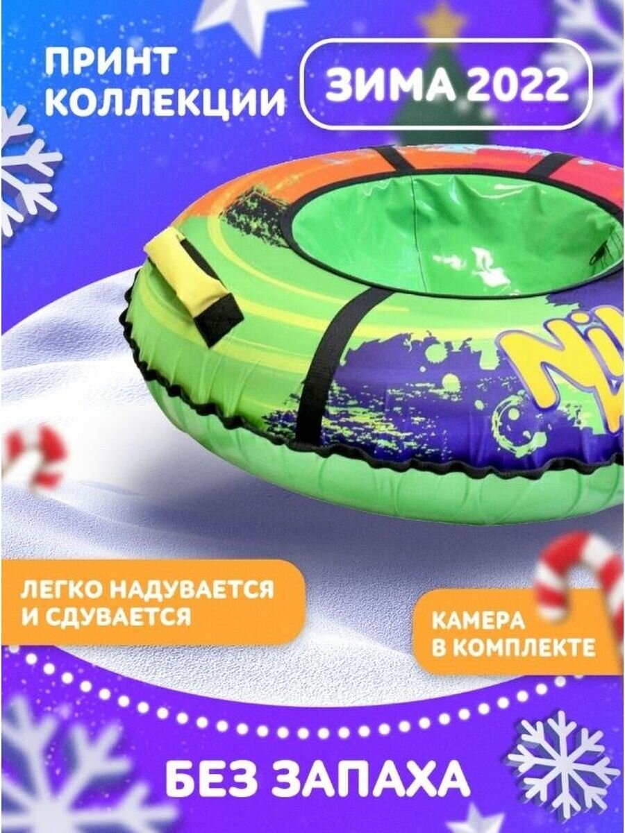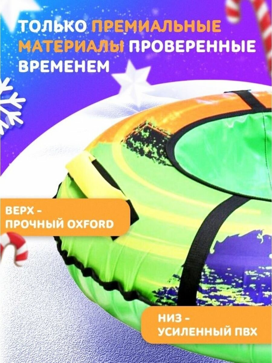 Лучшие цены. Красочный тюбинг из принтованной ткани подарит незабываемые впечатления от зимней прогулки. Водонепроницаемая ткань, из которой изготовлена верхняя часть изделия, создаст дополнительное сопротивление и не позволит выскользнуть из тюбинга. А благодаря высококачественной тентовой ткани ПВХ с глянцевой поверхностью, из которой исполнено дно модели, достигается идеальное скольжение. Материал изделия устойчив к морозам до –28°С. Все швы усилены капроновой лентой. Магазины в вашем городе.