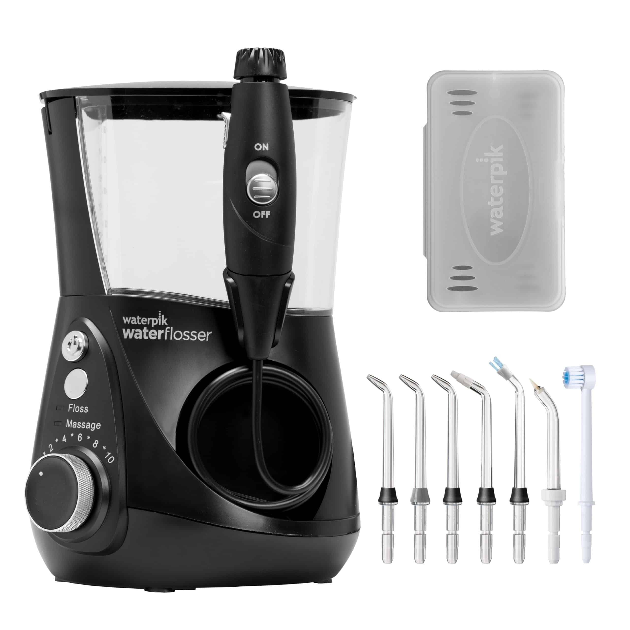 Лучшие цены. Ирригатор WaterPik WP-672 Ultra Professional - один из самых качественных и надежных приборов от всемирно известной компании WaterPik. Реле, расположенное на корпусе ирригатора, позволяет регулировать давление от 70 до 690 кПа, тщательно вымывая остатки пищи и новый налет из межзубных промежутков и ротовой полости в целом. Данная модель оснащена двумя режимами работы: - режим флосса для более эффективного очищения межзубных промежутков; - режим массажа десен для укрепления и оздоровления тканей пародонта. Магазины в вашем городе.
