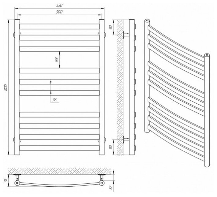 Полотенцесушитель водяной Laris Кватро Классик П10 80x50