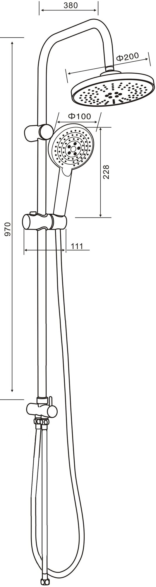| Комплектация | ручной душ (душевая лейка) / верхний душ (тропический) / стойка / штанга / душевой шланг / крепление ручного душа |